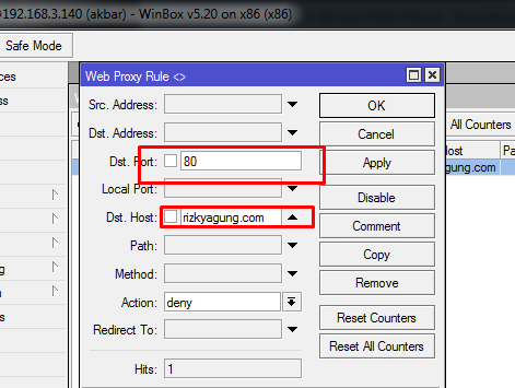” Kolom Name di isi sesuai dengan nama situs yang akan di blok agar Anda tidak Lupa atau keliru nantinya